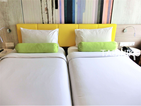 (2)Standard Room スタンダードルーム。2人まで。シングルベッド2台、無料WiFi